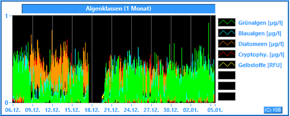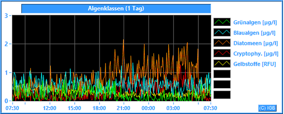 Die FluoroProbe von bbe moldaenke ist ein hochempfindliches Messinstrument für die Analyse von Chlorophyll mit Differenzierung der Algenklassen. Es werden direkt während der Messung einzelne Profile für Grünalgen, Blaualgen (Cyanobakterien), Diatomeen und Cryptophyceen erstellt.