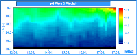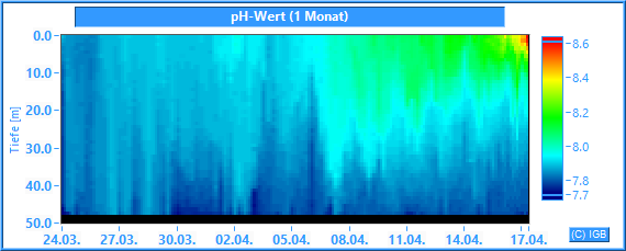Der pH-Wert wird mit einer Multiparameter-Sonde EXO2 von YSI in ca. 1.5 m Tiefe gemessen.