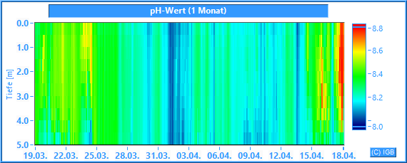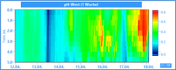 Der pH-Wert wird mit der Multiparameter-Sonde EXO2 von YSI in ca. 1.5 m Tiefe gemessen.