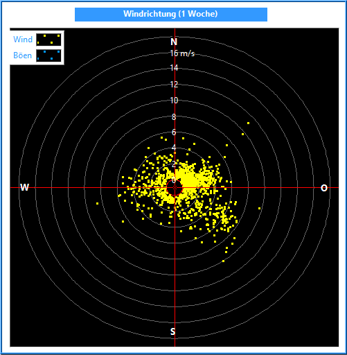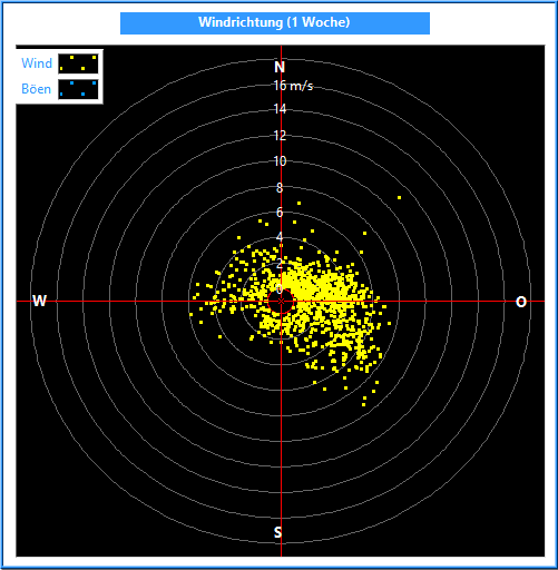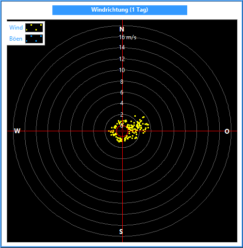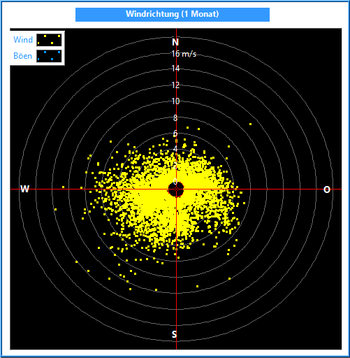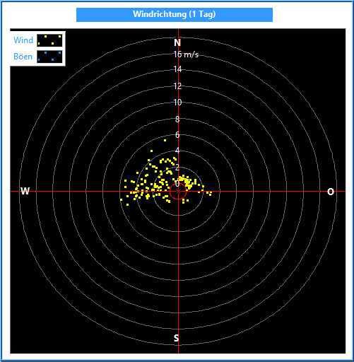 Die Windrichtung wird mit einem Windrichtungsgeber in einer Auflösung und Genauigkeit von 2.5° gemessen. Zur Bildung des Mittelwertes ist es wichtig, nicht die Winkel, sondern die Kreiskoordinaten zu mitteln. Dabei wird außerdem die Kreiskoordinate mit der jeweiligen Windgeschwindigkeit multipliziert.
