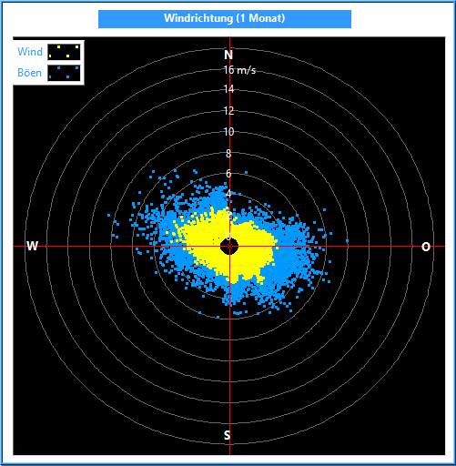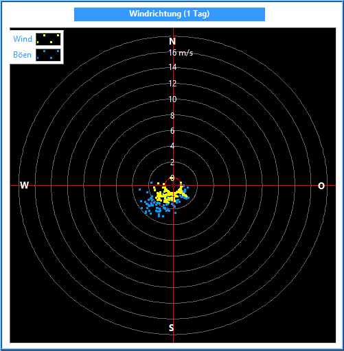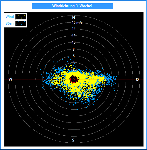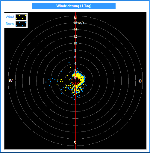 Die Windrichtung wird mit einem Windrichtungsgeber in einer Auflösung und Genauigkeit von 2.5° gemessen. Zur Bildung des Mittelwertes ist es wichtig, nicht die Winkel, sondern die Kreiskoordinaten zu mitteln. Dabei wird außerdem die Kreiskoordinate mit der jeweiligen Windgeschwindigkeit multipliziert.